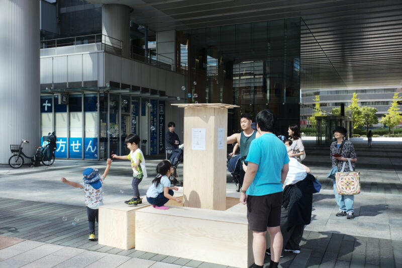 2019年より継続して行っている、日本橋浜町エリアマネジメント(日本橋浜町AM)とのプロジェクト。本年度は、都心部における防災対策としての「住民同士の弱いつながり」を実現するため、タクティカルアーバニズムの実践として、3チームに分かれて積極的介入を行った。具体的には、住民の何気なく集う場として、「シャボン玉」が吹き出すタワーとベンチを組み合わせた「シャボり場」、グリーンをもらい受けて、家庭で育て、一定期間でまた持ち寄って街の緑として活かす「wakewakeプロジェクト」など、ユニークかつ大胆な提案を実際に試作し、都市内で実践を行った。