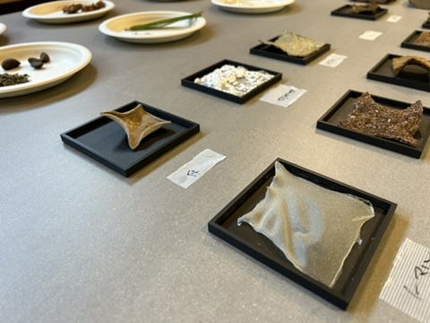 2022 年 12 月の生物多様性条約第 15 回締約国会議(COP15)で採択された「昆明・モントリオール生物多様性目標」に基づき、環境省は「2030 年までに陸域と海域の 30%以上を保全地域にする」という目標を掲げている。この野心的な目標達成には行政による制度整備だけに頼らず住民、自治体、企業など多様なステークルダーによる組織の枠を超えた協働と、日常的な実践が不可欠である。そこで「生物多様性の保全・回復による持続的な関係づくりのための対話型デザイン」というテーマを設定し、生物多様性の価値理解の促進、事業活動や地域社会との共存を可能にする企画立案、実施ノウハウと事例の蓄積など、デザイン実践を通じた知識創造を研究範囲に共同研究を開始した。具体的には、自然の美しさを再発見するためのデザイン言語開発、島内の素材を利活用するためのエコシステムデザイン、害獣の食肉化を通じて自然との関係を見直す食文化デザインほか、5つのプロジェクトユニットで研究で推進し、現地ラウンドテーブルディスカッション(2024/10)、「ICHIGAYA INNOVATION DAYS」でのコンセプト展示(2024/11)を経て、現地での最終報告会(2025/02)を実施した。
